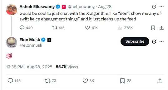 "Elon's X feed but without politics"