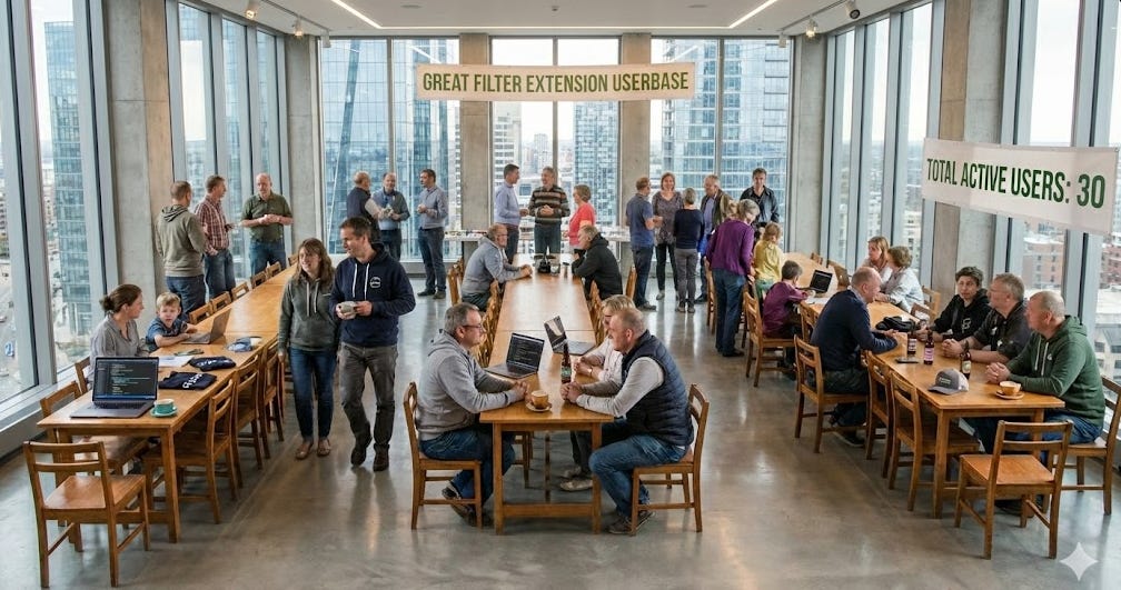 Not a flop, not a hit. As I said, having 30 users is really cool. On the other hand, I expected a bimodal outcome — I thought that the most likely result was that nobody would actually use it, but I assigned a small probability to the extension blowing up, becoming popular, e.g., on X, with much steeper user growth. The actual outcome doesn’t fit any of these scenarios! So it doesn’t give me a clear signal on whether this is something people really want or not.